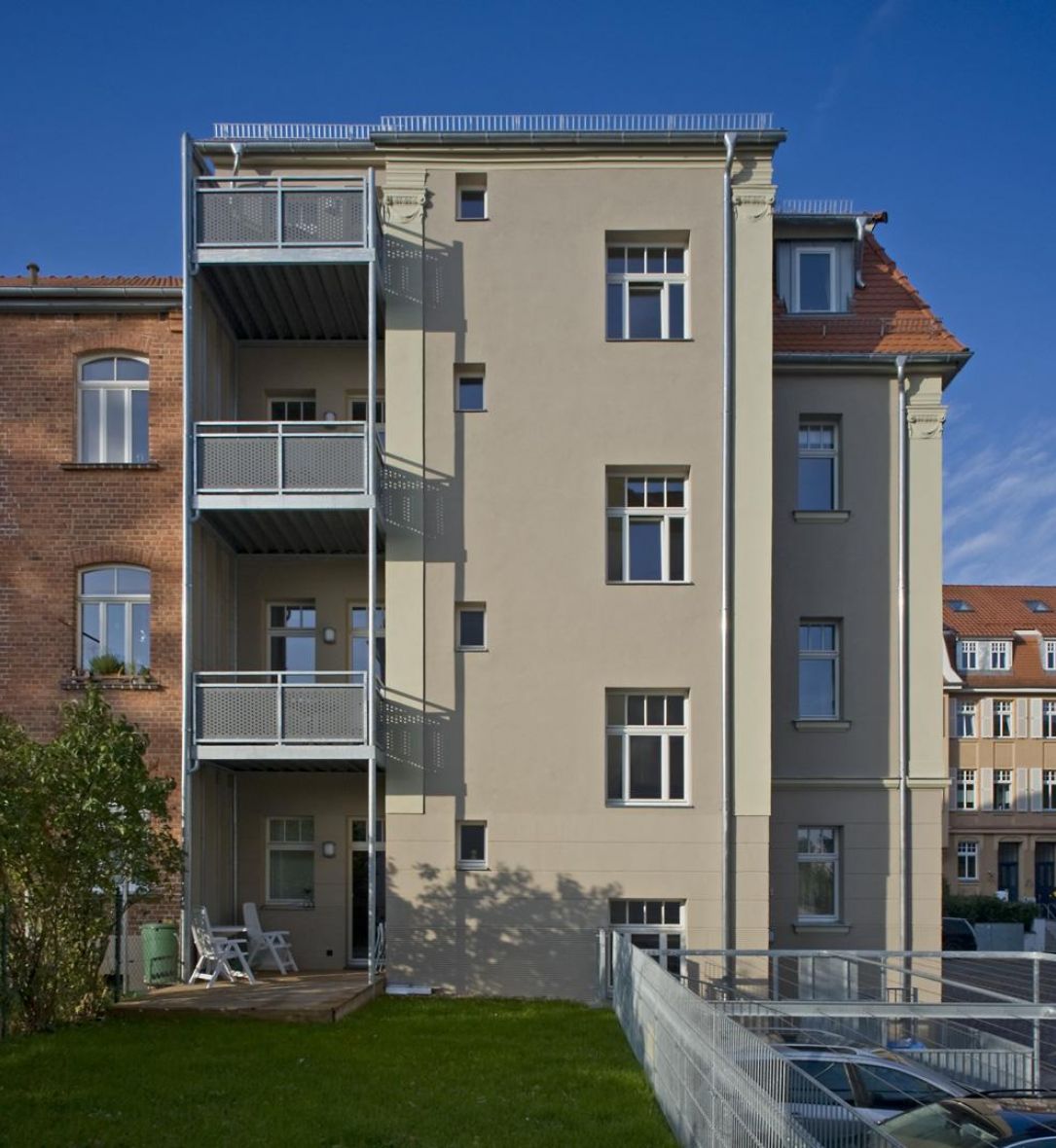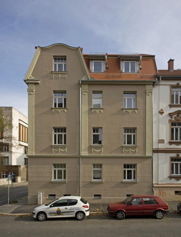Das historische Gebäude in der Thomas-Mann-Straße 9 wurde kernsaniert und zu 4 Wohneinheiten mit einer Fläche von ca. 380 m² umgebaut. Während der Sanierung wurden an der Fassade Balkone ergänzt und die historischen Fassadenornamente und Pilaster aufgearbeitet. Zudem wurden neue Fenster eingebaut, die dem Originalzustand nachempfunden sind.